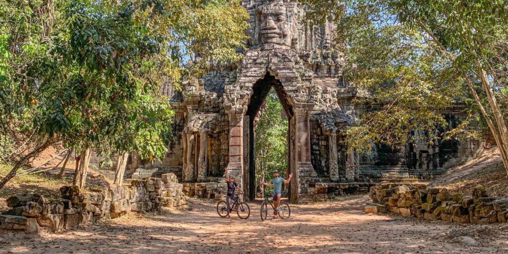 Angkor Wat → Bayon Temple (Angkor Thom area): 3 km ~ 15-minute cycling